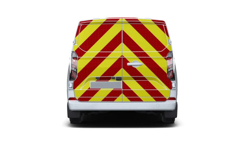 Chevrons are needed on the back of vans to make the vehicle highly visible to other road users, especially when it’s stopped, moving slowly, or working near traffic. The bright red-and-yellow reflective pattern is designed to catch attention in all conditions—day, night, rain, or fog—so approaching drivers can spot the van earlier and react safely. This reduces the risk of rear-end collisions, protects workers operating around the vehicle, and helps the van comply with road safety guidelines such as Chapter 8 recommendations. In short, chevrons act as a clear warning signal that improves safety for everyone on the road.
